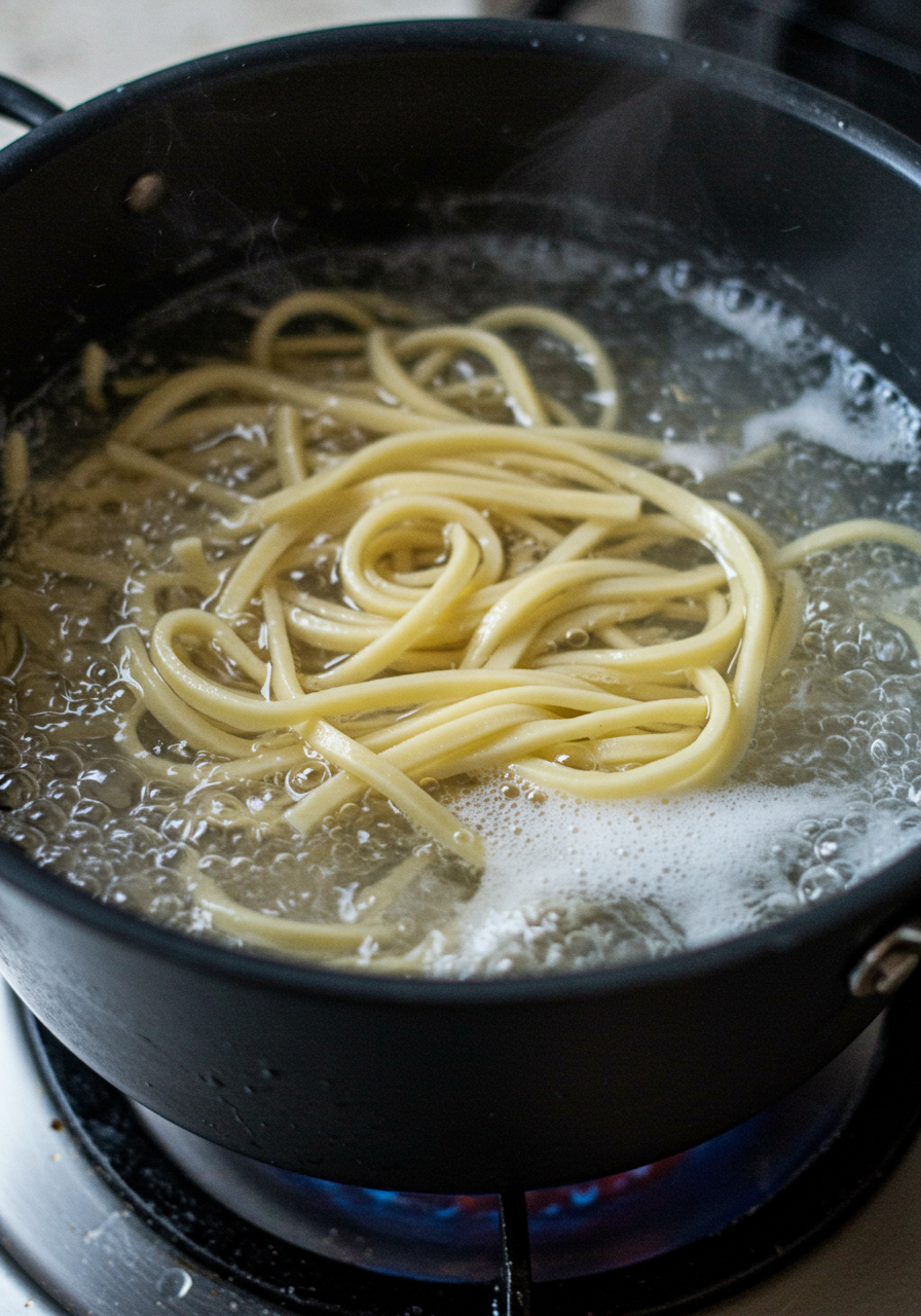 Bring a large pot of salted water to a rolling boil and drop in the pici. Boil until the pasta rises to the top.